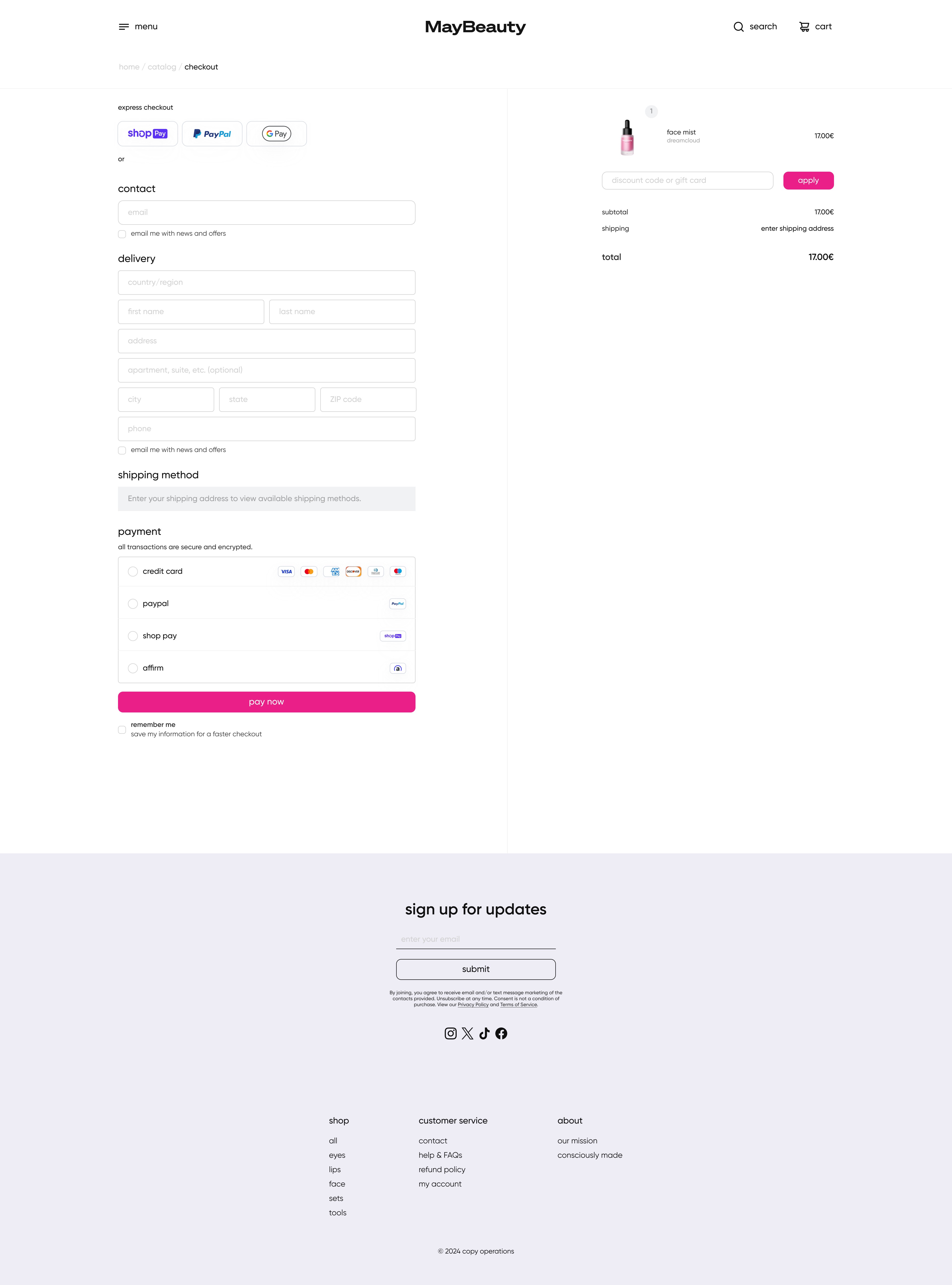 Checkout page