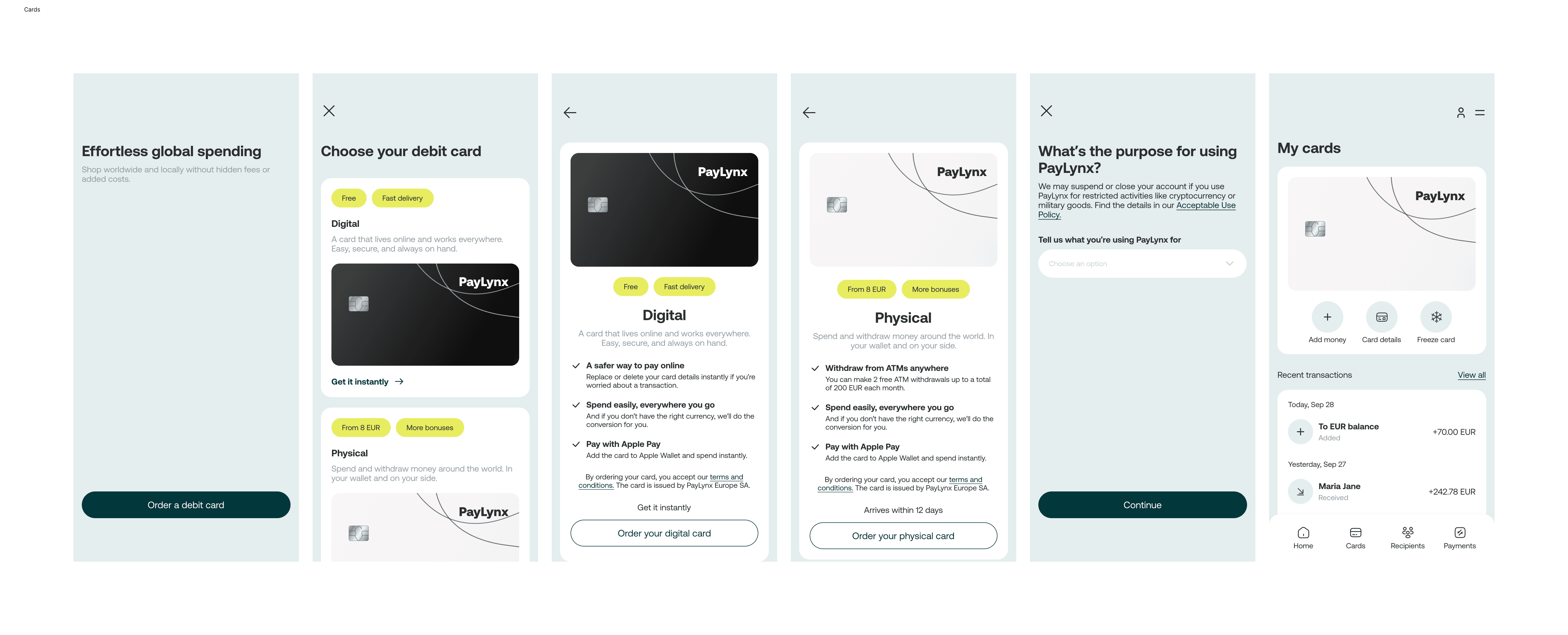 The final design presents Paylynx as a clear and approachable fintech product, where structure and simplicity work together to support everyday financial tasks. The interface turns complex data into an understandable and calm experience, helping users feel more in control of their finances.