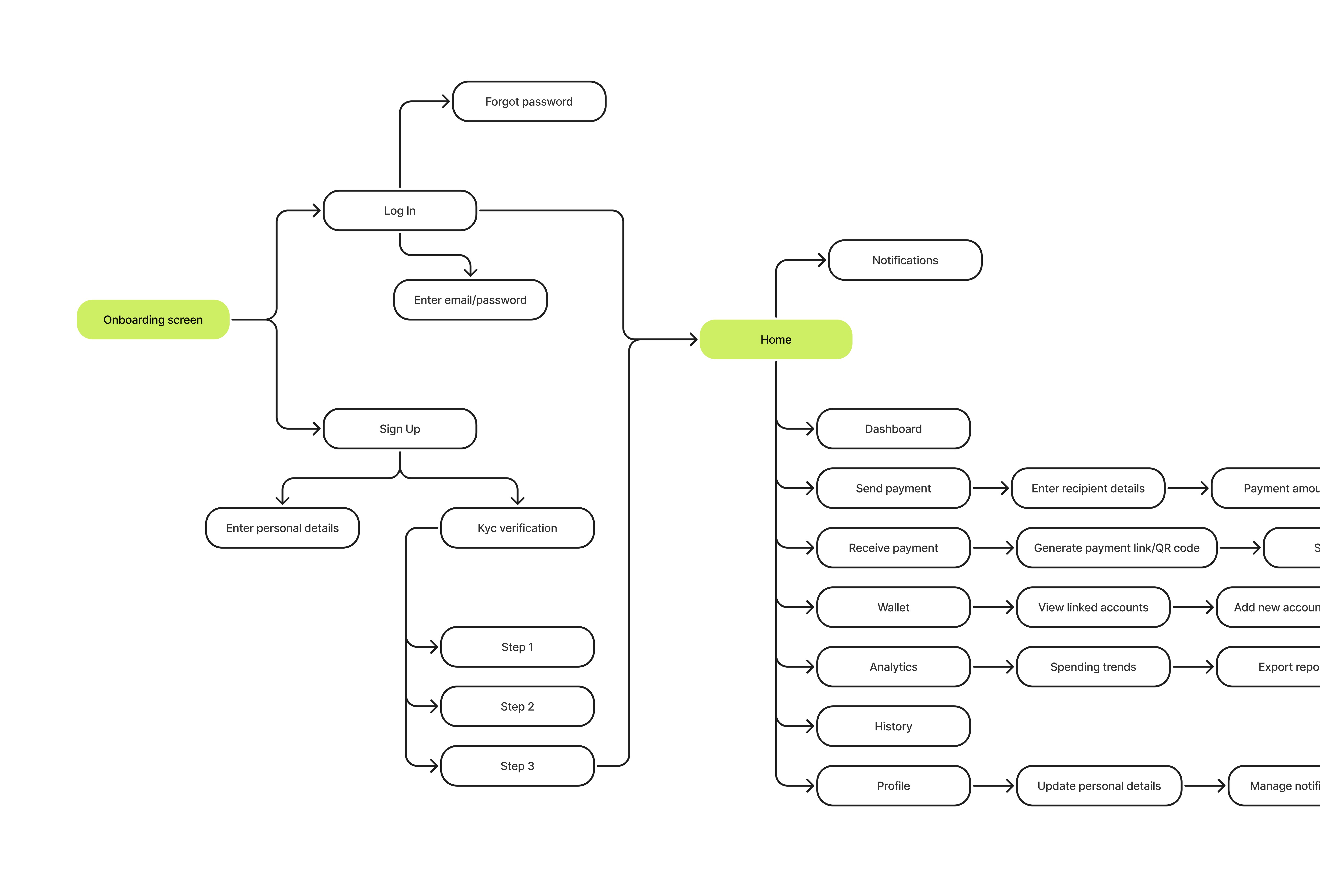 The sequence of steps users take within the app to complete their tasks, ensuring a smooth and intuitive journey.